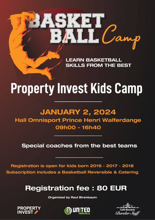 Join The Pride of Luxembourg Basketball Camp– a special two-day event for U12 to U16 players to improve their skills under the guidance of Luxembourg’s top basketball legends, including Rick Brooks, a renowned coach with international experience.